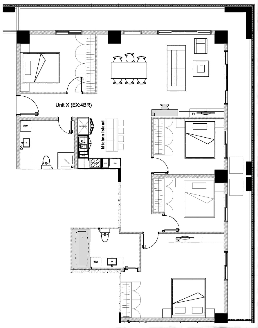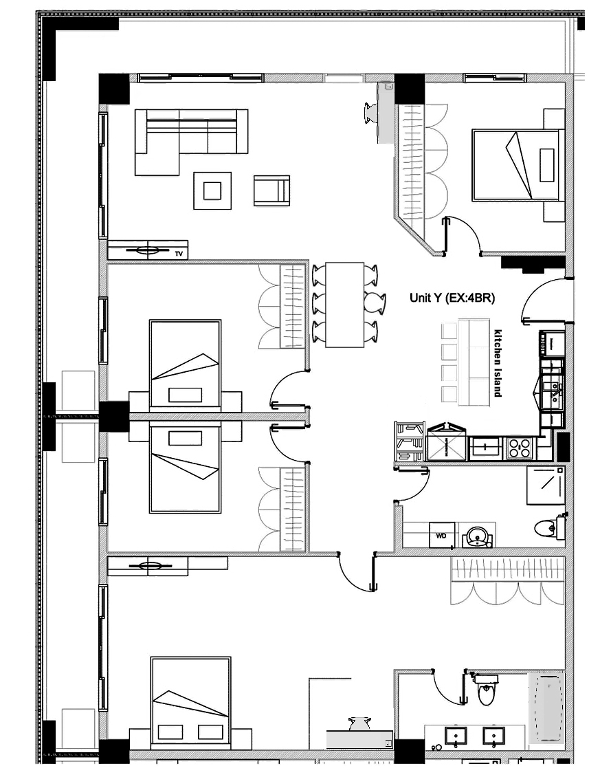 When it comes to big families, our fully-furnished four-bedroom apartments are the favorites of our valuable tenants. The apartment type provides enough rooms for those who seeks comfort, convenience, and perfection in living as a big family not to mention the fully-fitted modern kitchen with a newly-designed dishwasher and a balcony with amazing river view.