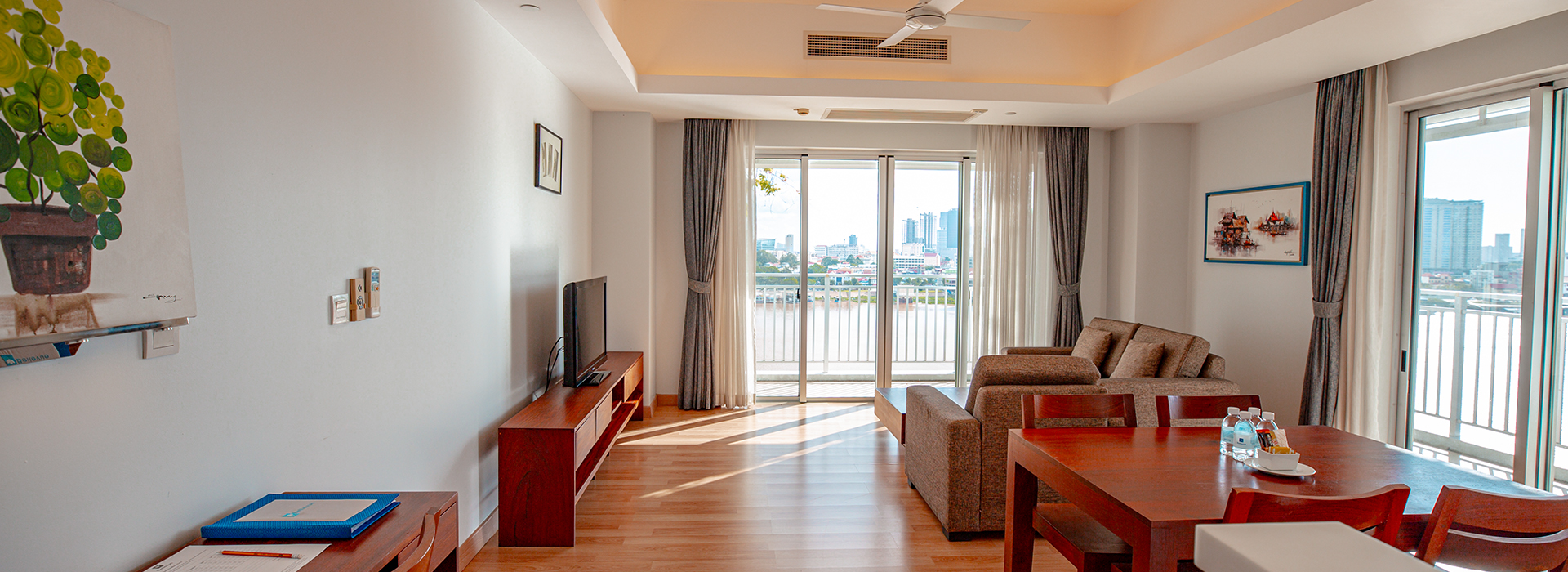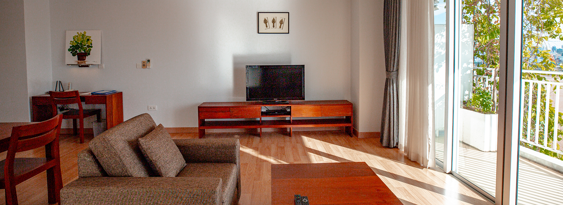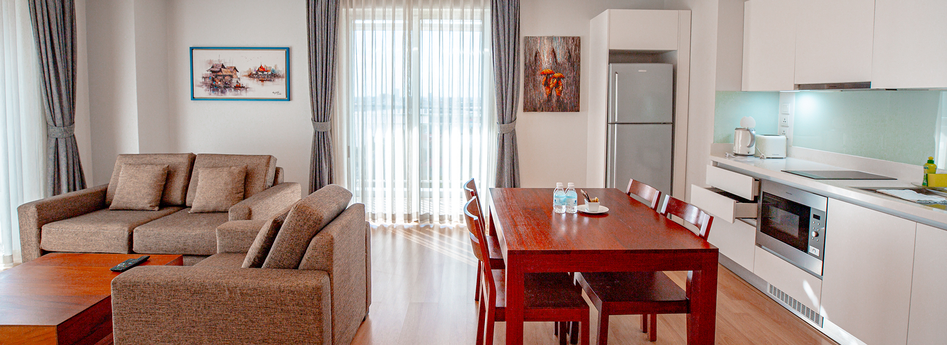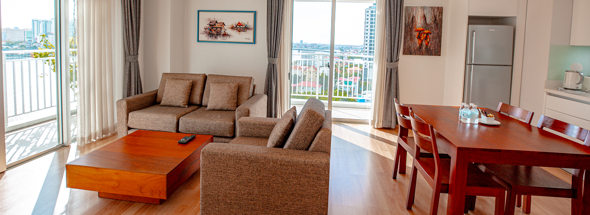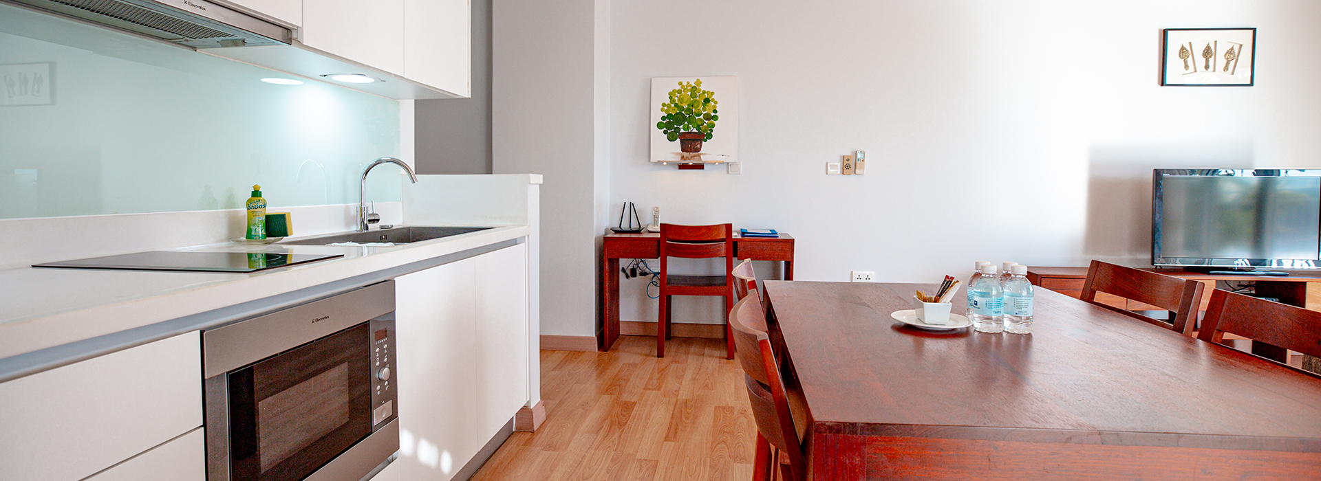 For a small family or a couple, Bellevue’s one bedroom apartment offers spacious comfort, convenience, and privacy. With the size starting from 72-95 square meters, each apartment features a living area with kitchenette, spacious dining and living room area, king size bed, en-suite bathroom, laundry room with washing-drying machine, a flat screen LCD TV, and multi split air-conditionings and ceiling fans.
